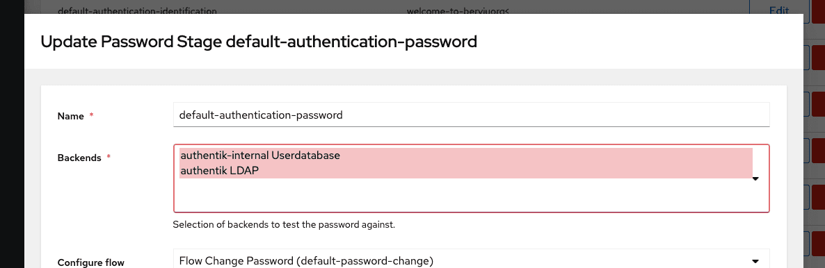 6. To finalise the Active Directory setup, you need to enable the backend "authentik LDAP" in the Password Stage.